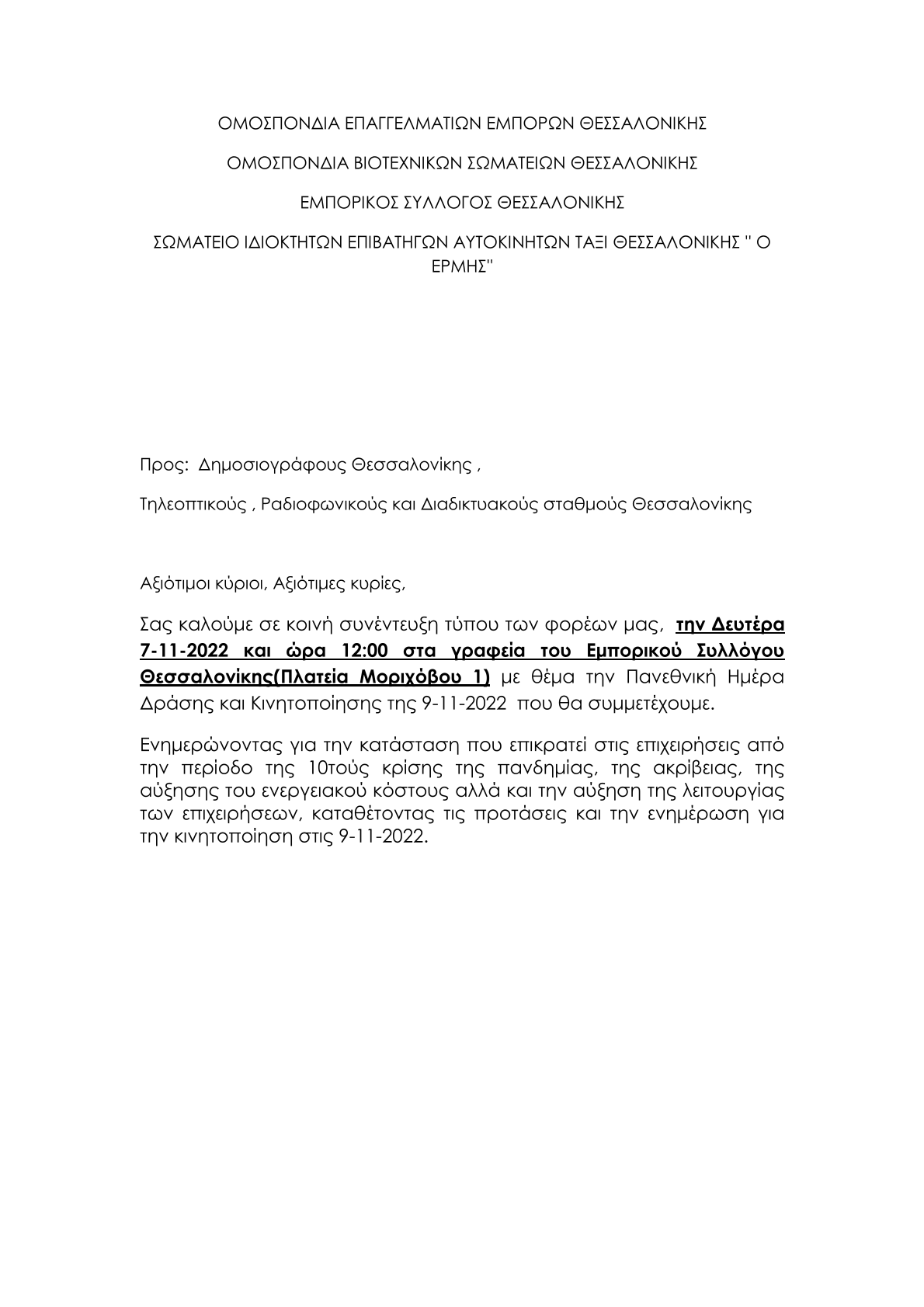 Κοινή Συνέντευξη Τύπου των Φορέων της Θεσσαλονίκης