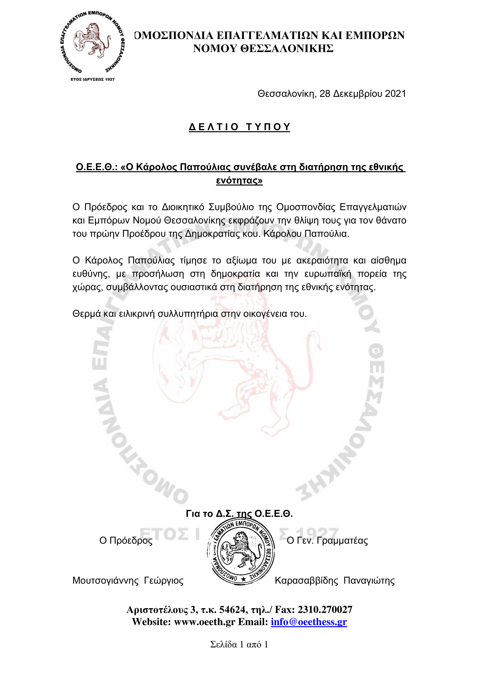 ΕπόμενοΧριστουγεννιάτικες Ευχές Από Την Ομοσπονδία Επαγγελματιών Και Εμπόρων Νομού Θεσσαλονίκης